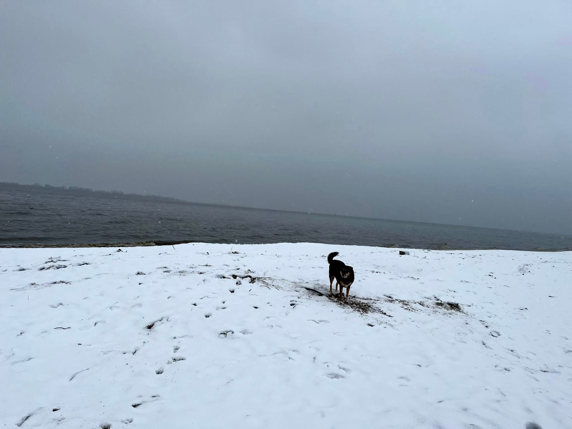 Und dann dieser Schneesturm. Der Hund völlig ausgelassen. Sie spielt ja sonst eher selten – aber hier? Hier fühlte sie sich wohl. Tollte über den Strand, rannte, sprang, lebte.